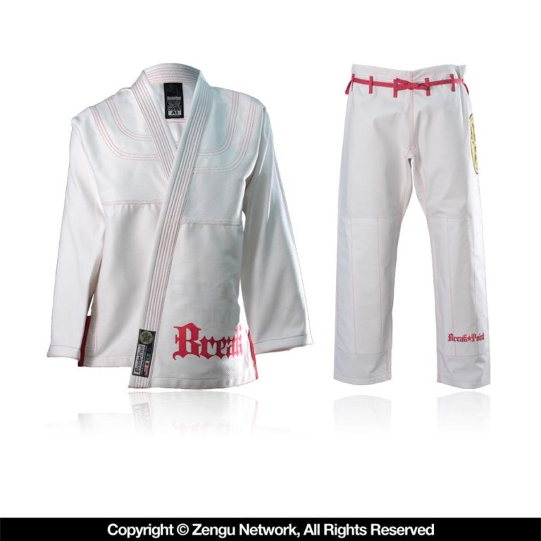 Soft single weave cotton jacketLightweight ripstop pantsFour drawstring loopsRed contrast stitching, vents, and loopsJacket features one woven Gold Label and one embroideryPants feature another Gold Label and one smaller embroideryLarge grey print hidden inside the jacketThe “Gold Label” Gi is a great choice for hard training sessions, built from durable single weave fabric with no shortage of stitching reinforcements. Accents and trim include red vents, drawstring/loops, and contrast stitching. The classic BreakPoint logo is embroidered with great detail along the bottom of the jacket skirt and a smaller version is found along the skin, directly below the knee reinforcements. While some Gi companies will cut off the knee reinforcements higher, BP is liberal with the reinforcement length which offers superior protection once you start rolling and bending your knee. Lightweight ripstop cotton is used throughout the pants to provide an excellent balance of weight and breathability.On the back of the jacket and the hip of the pants is the “Gold Label” patch, which is double-stitched for a strong hold and has two layers of backing that help keep its shape over time.