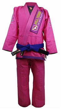 With the same quality and excellent cut Bull Terrier is known for in all of their gis, the Bull Terrier Feminino BJJ Gi is chic, stylish, and the perfect kimono for the female Brazilian Jiu-Jitsu athlete or competitor.The Bull Terrier Feminino BJJ Gi features a light weight 475 GSM Single Weave jacket and soft 10 oz cotton twill pants, with standard length reinforced knee padding. With streamlined styling, the Feminino gi is adorned with the distinctive Bull Terrier logo in pink, embroidered on the arms underneath “Bull Terrier Competition” in block lettering along the shoulders, as well as the traditional Bull Terrier woven rectangular patch, sewn along the lapel and back of the jacket.GI FEATURES475 GSM Single Weave jacketOne piece jacket with no back seamEVA foam collar10 oz cotton twill pantsStretchy rope drawstringReinforced seamsWomen’s cut*Belt NOT includedVIEW OUR ENTIRE BULL TERRIER GI COLLECTIONBull Terrier Size ChartHeightWeightSize4′ 4″- 4′ 9″90 to 110 lbs.F04′ 6″ – 5′ 2″100 to 120 lbs.F14′ 8″ – 5′ 3″110 to 130 lbs.F25′ 0″ – 5′ 5″120 to 140 lbs.F35′ 2″ – 5′ 7″130 to 150 lbs.F4