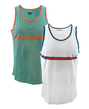 The RVCA Barlow Tank is a vintage washed jersey tank with contrast ribbing at the neck and armholes, vents at the side seams, and a RVCA screen print with distorted stripe print at across the chest.100% cotton