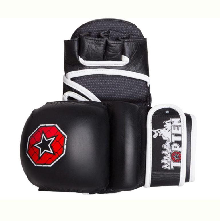 Classic MMA grappling and standup, striking training gloves. A thick layer of impact absorbing material makes for safe striking training on a partner or a punching bag. Open palm construction provides for freedom of movement. Complete with adjustable wrap-around wrist strap. This model is made of the highest grade leather.