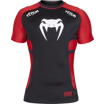 Designed for superior performance, the Venum Absolute Compression Shirt is the ultimate in athletic apparel technology. Featuring ultra-light and breathable 4-way stretch polyester/spandex blend fabric, with Dry Tech™ and compression fiber technology, and a new custom rubber grip on the bottom seam, the Venum Absolute Compression Shirt will make you feel invincible. The bi-material construction, featuring grey breathable mesh panels around key areas of the body, helps you keep cool, even under the hottest conditions. Streamlined in its styling, it has the iconic Venum viper head logo on the front, and “Venum” across the shoulder blades and back.FEATURES:4-way stretch polyester/spandex blend fabric – ultra-light and breathable, with exceptional stretch and shape retentionBi-material construction – strategically placed mesh panels help keep you coolDry Tech™ technology – actively wicks moisture from the bodyCompression fiber technology – for improved blood flow and accelerated recovery timeUpper-Welded™ – thermal welding process for seamless constructionFully sublimated graphics – won’t crack, peel, or fadeCustom rubber grip on bottom seam – to prevent ride-up while trainingMaterial: 87% polyester, 13% spandexPlease note: Due to hygiene concerns, because this product is made in part, or in full, of a lycra material, it is not eligible for return or exchange under any circumstances.