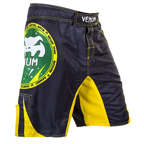 Venum develops its “All sports” classic through this “Brazil Edition” fight shorts. This fight shorts brims with Brazil, wether it is through its powerful and explosive design or through the Oriverde colors in the “Venum” screenprinted on the left thigh and in the “All Sports” circle on the right thigh. A furious creation in honor of the homeland of some of the greatest fighters like Wanderlei Silva, José Aldo, Thiago Silva … Venum brand has incorporated in this short all its fight wear know-how: – Your agility will be improved with the flex system located at the crotch. – Your mobility will be enhanced through the use of a lightweight microfiber fabric. – Your concentration will be only focusedon your battle with the perfect support of the belt. – Your fight short will accompany you, fight after fight, without losing quality through high quality serigraphies. Technical features: – 100% high quality microfiber (polyester). – System flex with the between legs for a better mobility. – Serigraphy of high quality. – Side slits. – Closing by velcro and lace of tightening. – Ultra lightweight. – Made In Brazil.