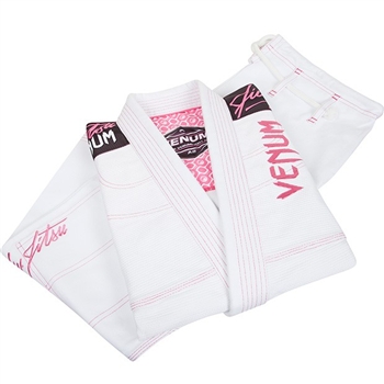 Designed for the everyday mat grind, the Venum Challenger 2.0 Women’s BJJ Gi is the latest version of the popular Venum model, designed specifically for the female body. Developed in collaboration with Venum sponsored athlete Luiza Monteiro, the Challenger is the perfect choice for both advanced practitioners and beginners alike.The Venum Challenger 2.0 Women’s BJJ Gi features a lightweight 410 GSM Pearl Weave jacket made from premium cotton fabric, ensuring improved moisture wicking and a comfortable feel. All stress areas – collar, shoulders, cuffs and knees – have been reinforced to ensure lasting wear, and the collar has superior resistance to sweat and bacteria absorption. The pants are a made from durable cotton fabric, and feature a triangle crotch panel for increased range of motion. The interior of the gi features a sublimated polyester liner around the shoulders, delivering unparalleled comfort and moisture management. The Challenger 2.0 gi has the custom designed woven Venum patches on the shoulders, the script “Jiu Jitsu Venum” embroidered on the back of the jacket, and the signature viper head embroidered on the bottom of the pant leg.GI FEATURES:Women’s cut410 GSM Pearl Weave jacketQuick-dry, aerated and pre-shrunk cottonDurable cotton pantsTriangle crotch panelWoven shoulder patchesEmbroidered logos on back and pant legContrasting stitching*Belt NOT includedVIEW OUR ENTIRE VENUM GI COLLECTIONVenum Size ChartHeightWeightSize4′ 11″- 5’84 – 99 lbs.F15′ 0″ – 5′ 4″99 – 119 lbs.F25′ 3″ – 5′ 7″114 – 143 lbs.F35′ 6″ – 5′ 10″139 – 170 lbs.F4